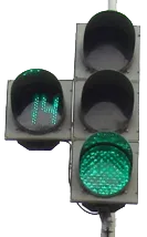 Сигнал светофора, время свечения которого отсчитывает табло |